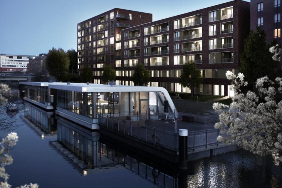 Citynaher Neubau in hervorragender Lage: Der Nagelsweg 24 befindet sich direkt an der Uferpromenade der City Süd, umgeben von mehreren Wasserkanälen. Die Umgebung kombiniert urbanes Stadtleben mit modernen Grün- und Wasserflächen.