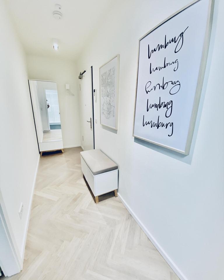 •Alle Wohnräume verfügen über hochwertiges Echtholzparkett (Eiche Avantgarde weiß geölt) im Fischgrät-Verlegemuster, durch welches ein natürliches Wohnklima geschaffen wird.