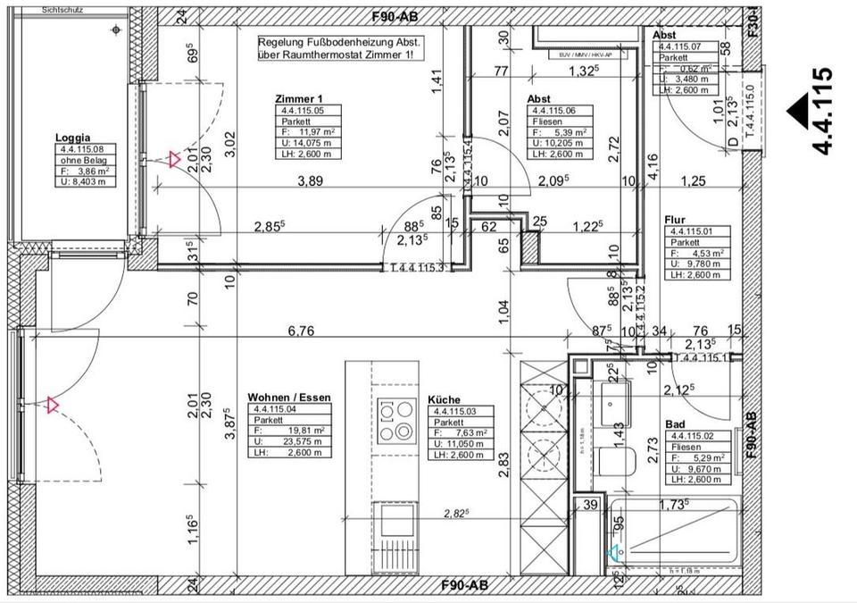 •Eine Fußbodenheizung sorgt in der kompletten Wohnung für angenehme Wärme. Diese lässt sich individuell pro Raum steuern.