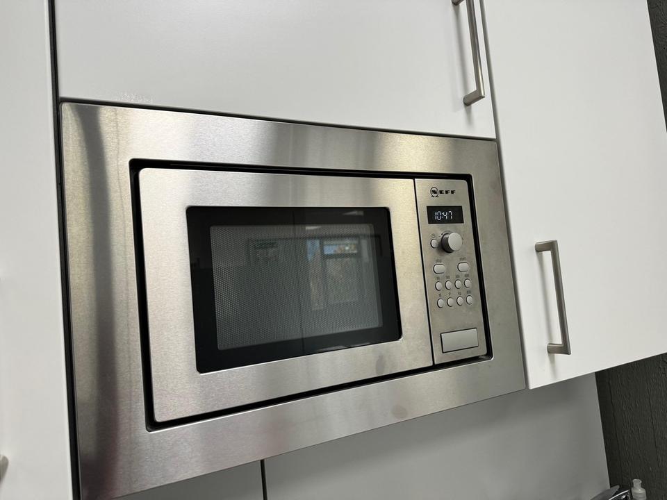+ Küchenzeile mit Spülmaschine, Microwelle, Kühlschrank & Herdplatte