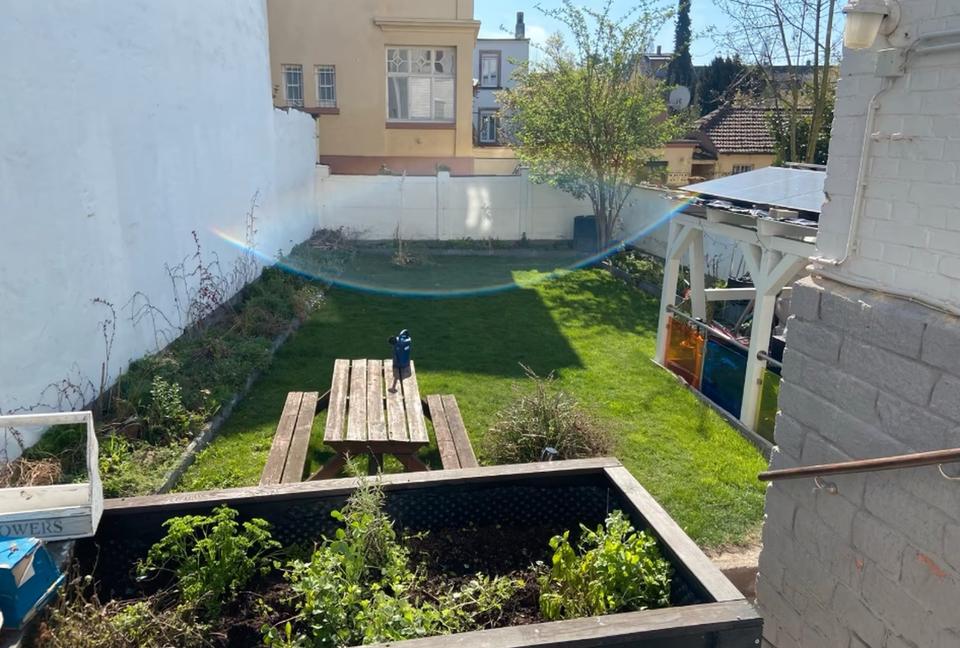 Zur Wohnung gehört ein großer Gemeinschaftsgarten mit eigener Terrasse, der kaum benutzt wird. Die WG wird nur an ein Personen vermietet, die bereit ist, sich zuverlässig und regelmäßig um die Gartenpflege zu kümmern. Zudem sind Haustiere nach Absprache erwünscht.