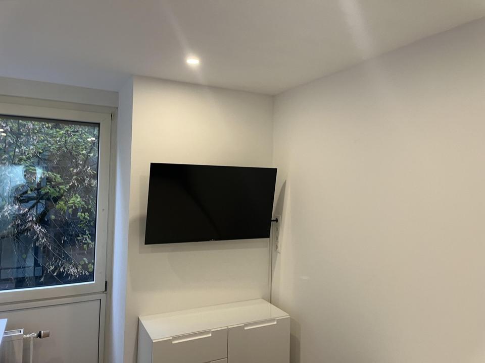 – **Flachbildfernseher** mit Fernbedienung, betriebsbereit installiert
