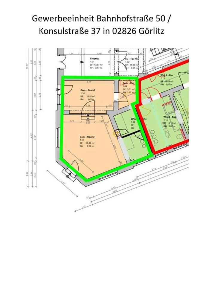 Diese ca. 60 m² große Gewerbeeinheit ist ein Erstbezug nach umfassender Sanierung. Sie bietet zwei separate Zugänge – einen von der Bahnhofstraße und einen direkt von der Ecke Konsulstraße/Bahnhofstraße. Ein zusätzlicher interner Eingang ermöglicht den Zugang über den allgemeinen Hausflur, der auch von den Hausbewohnern genutzt wird. Mehrere große, neu erneuerte Schaufenster bieten hervorragende Auslageflächen und lassen viel Tageslicht in den Raum. Achtung: In naher Zukunft wird es im gleichen Haus eine weitere, 70qm große Gewerbeeinheit geben. Diese wird gerade saniert.