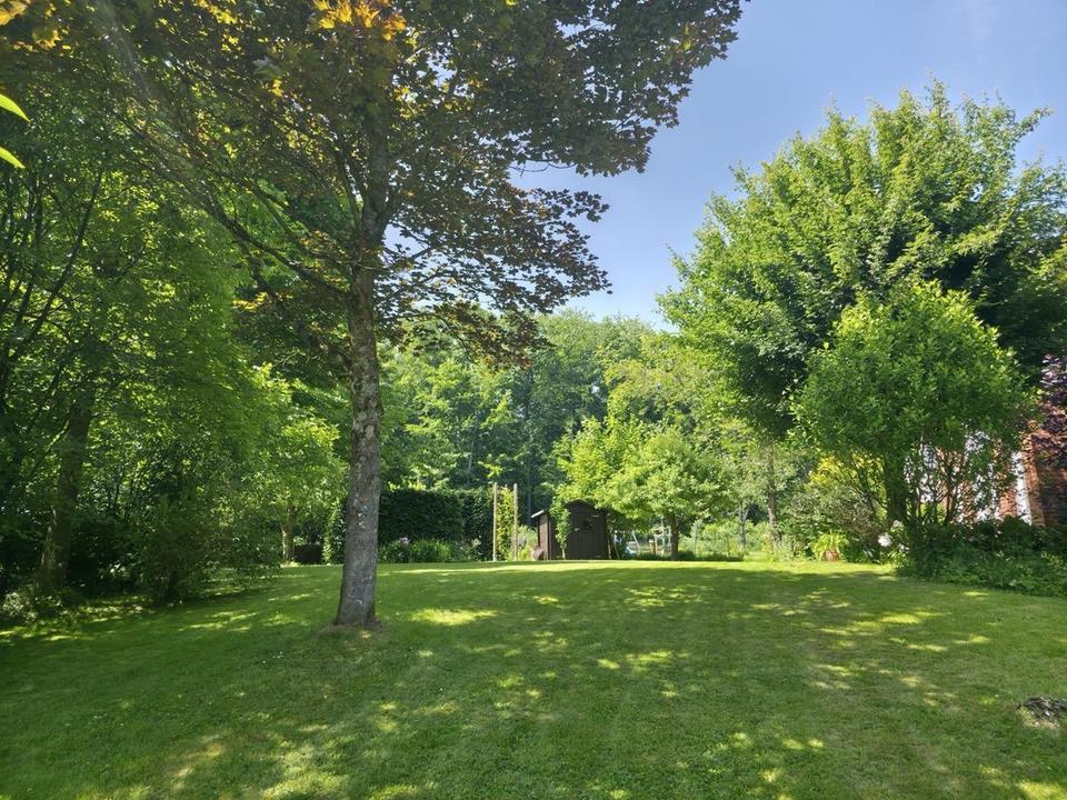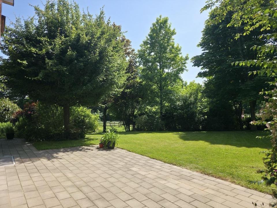 – Gepflegter Garten mit Sträuchern, Bäumen und Sichtschutz