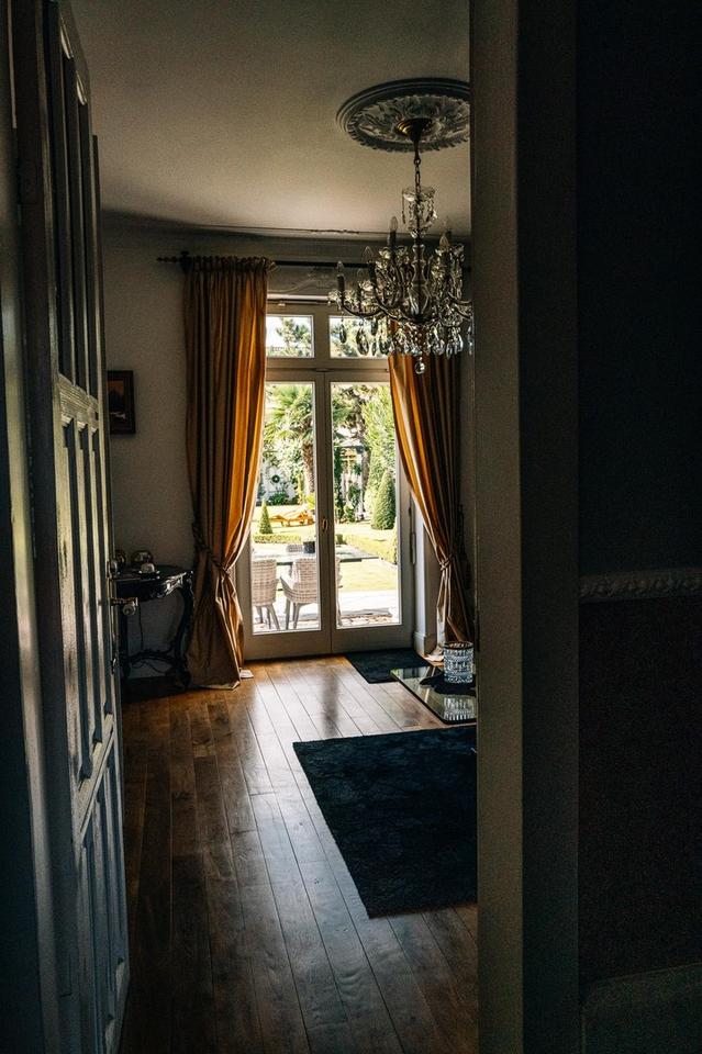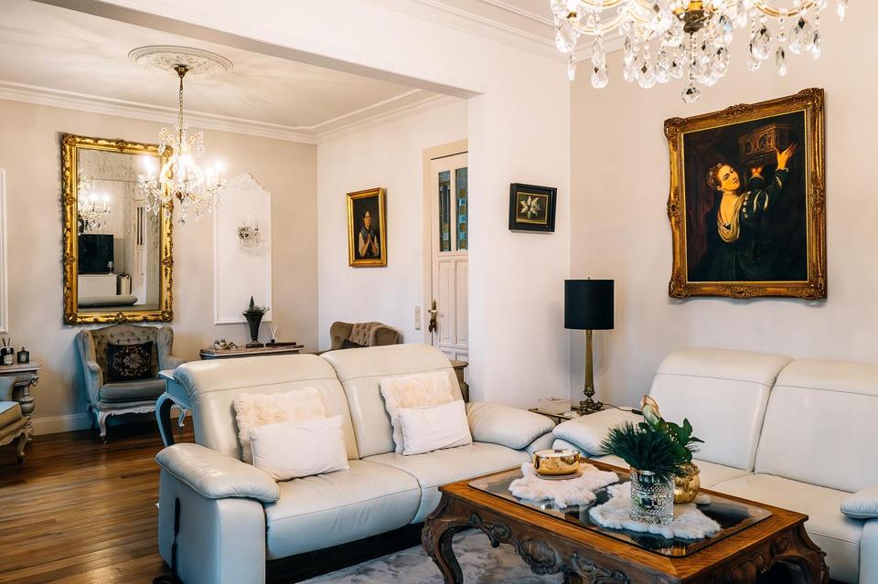 Im Inneren des Hauses wurden zahlreiche historische Baumaterialien verwendet, die den Charme und die Exklusivität des Anwesens unterstreichen. Die Böden sind mit Eichenparkett, Blaustein- und Marmorböden ausgestattet, während kunstvoll restaurierte Türen und Zargen sowie Blausteinstufen an der Treppe das Gesamtbild abrunden. Das geschmackvolle Entrée heißt Sie willkommen und führt zu beeindruckend gestalteten Räumen im Erdgeschoss.