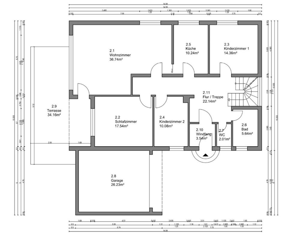 Im Erdgeschoss stehen Ihnen neben dem Wohn-/Essbereich drei weitere flexibel nutzbare Zimmer (Schlafzimmer, Kinderzimmer, Büro oder Gästezimmer) zur Verfügung. Die funktionale Küche ist mit einer Einbauküche und Markengeräten ausgestattet. Ein Tageslichtbad mit Badewanne und Dusche sowie ein separates Gäste-WC vervollständigen diese Ebene.