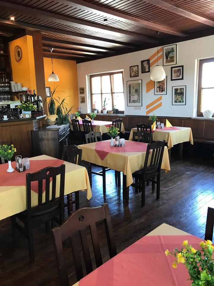 Außenbereich: Terrasse (40 Plätze) und weitläufiger Biergarten (ca. 100 Plätze).