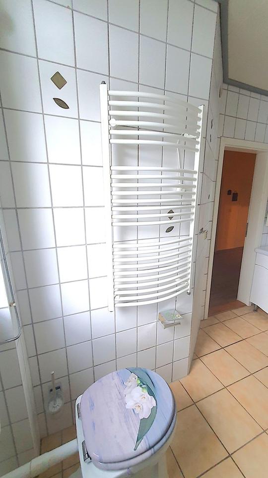Helle Laminatböden, neue Fenster, weißes Dusch/WC mit Fenster. Abstellplatz für die Waschmaschine ist im Dusch/WC.