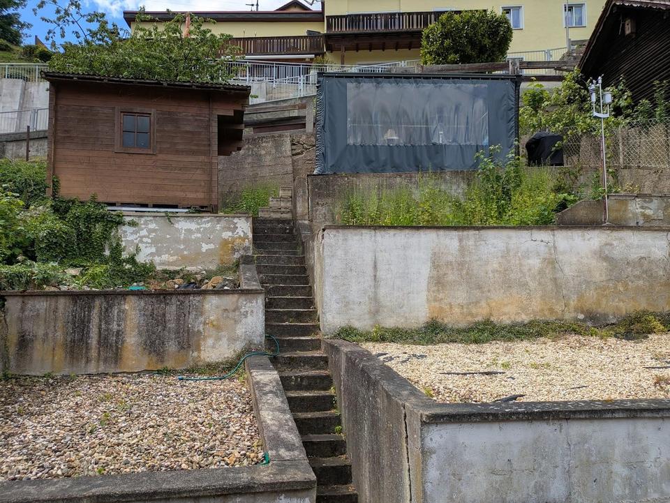 Der Garten verfügt neben einem Pavillon über ein Gerätehaus und hofft jetzt auf einen grünen Daumen, denn die Pflege des Gartens ist aus Zeitmangel leider etwas zu kurz gekommen.