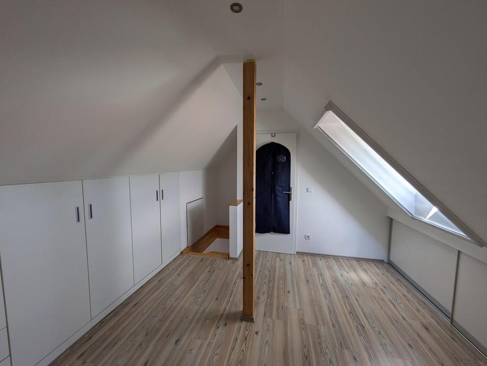 Das Dachgeschoss ist mit modernen Einbaumöbeln ausgestattet, die nahezu jeden Zentimeter der Dachschrägen sinnvoll ausnutzen (Schubladen mit z.T. 100 cm Tiefe).