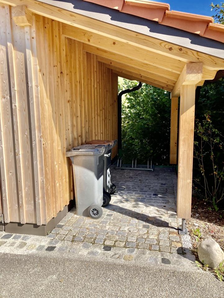 – Dachüberstand für Fahrräder, Mülltonnen etc.