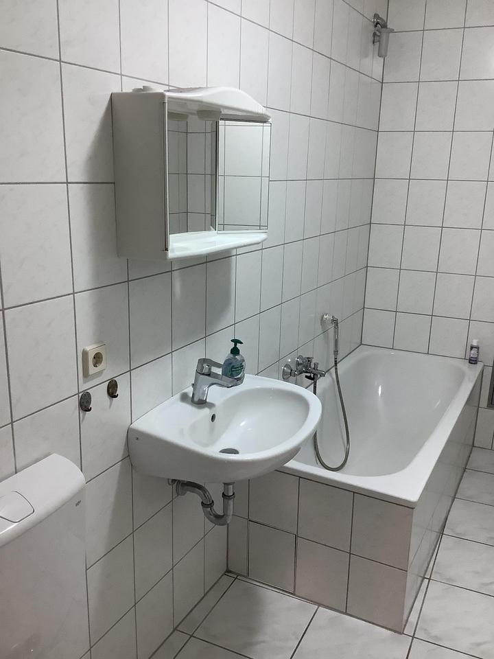 Diese gepflegte und geräumige Wohnung ist komplett (Badezimmer ausgenommen) mit einem neuwertigen, pflegeleichten Vinyl-Fußboden in Holzoptik ausgestattet. Das Badezimmer ist raumhoch und hell gefliest.