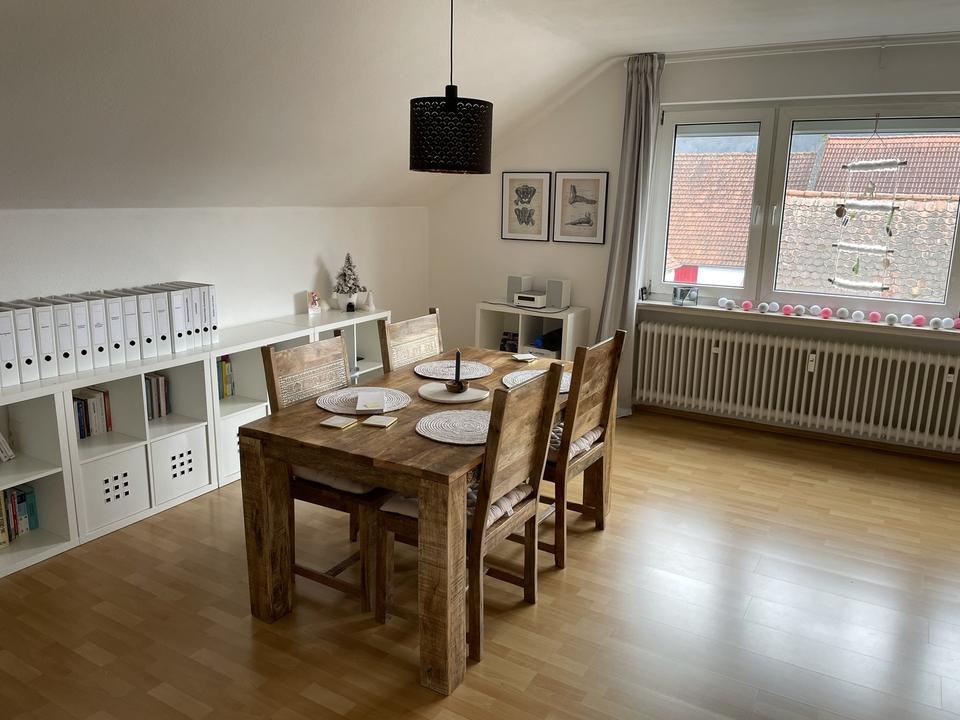 Sehr schöne moderne 2-Zimmer- Dachgeschosswohnung, bestehend aus einer Wohnküche ausgestattet mit einer mod. Einbauküche und ausreichend Platz für einen Esstisch, ein großes Wohnzimmer mit einer schönen Aussicht zum Johannisberg, ein Schlafzimmer mit großem Balkon und 2-flgl. Balkontür, modernes Bad, mit großer Badewanne und einem Dachflächenfenster. Die Zimmer besitzen einen Laminatboden.