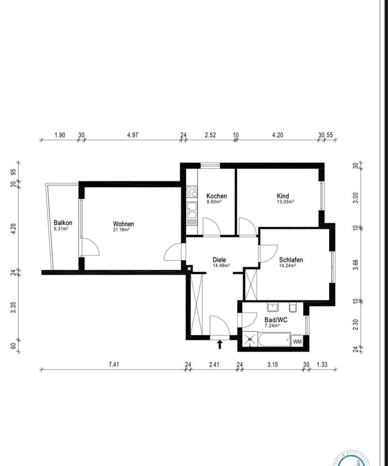 Die angebotene Wohnung befindet sich in einem gepflegten Mehrfamilienhaus in gutem baulichen Zustand.