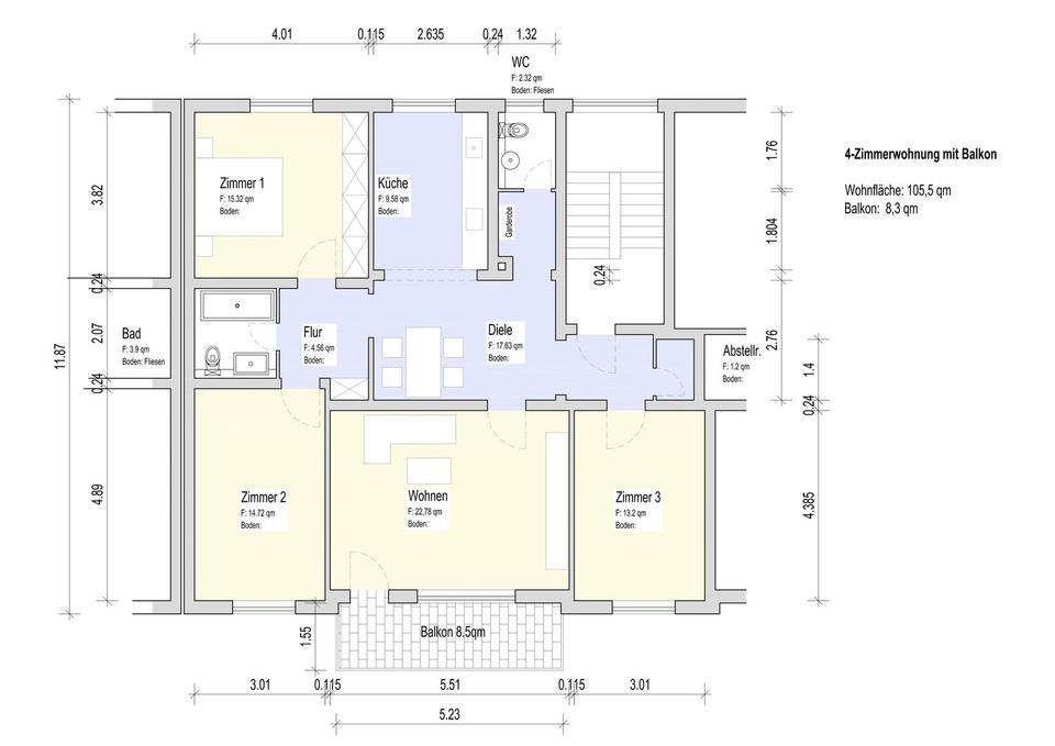 Die Wohnung im 2.Obergeschoss überzeugt durch eine sehr gute Grundrissgestaltung.