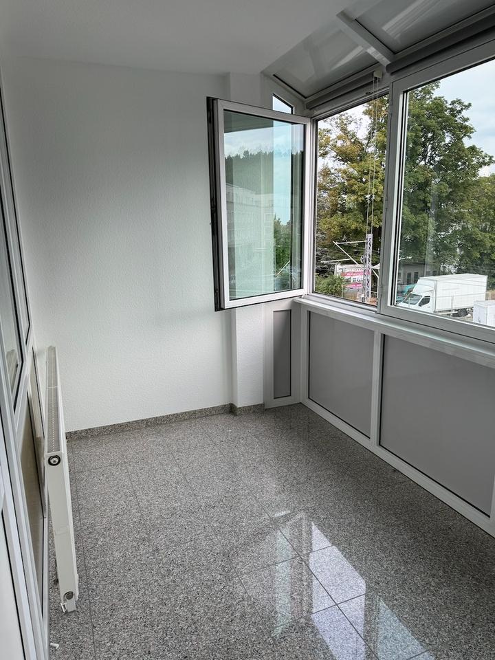 Vom Wohnzimmer aus erreichen Sie den beheizbaren Wintergarten, ideal zum Lesen, Home-Office oder Entspannen – bei Sonnenschein öffnen Schiebefenster zum Balkon und laden zu frischer Luft ein.
