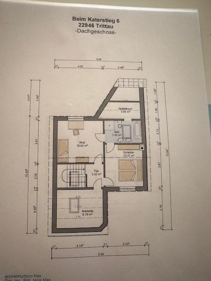 OG: Abstellraum (3,00qm), Kinderzimmer (16,62qm), Badezimmer (7,42qm), Schlafzimmer (13,37qm), Ankleidezimmer oder 2 Kinderzimmer (6,79qm), Flur (3,32qm)