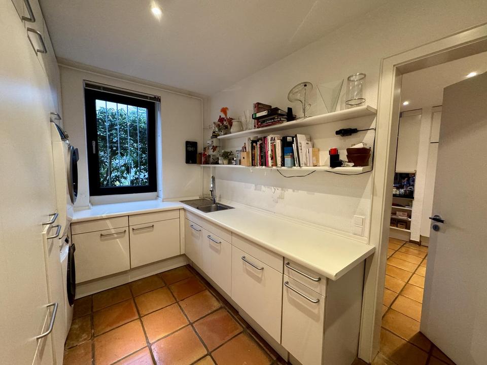 Der angrenzende Wirtschaftsraum, ausgestattet mit Waschmaschine, Trockner und einer praktischen Spüle, führt direkt in Garage und Werkstatt. So haben Sie alle wichtigen Haushaltsfunktionen an einem Ort, was zusätzlichen Komfort und praktische Funktionalität im Alltag bietet.