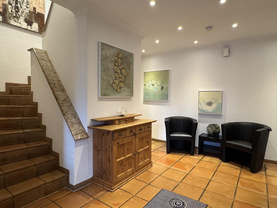 Der Eingangsbereich wirkt zurzeit eher geschäftlich, lässt sich aber problemlos an Ihre Bedürfnisse anpassen.