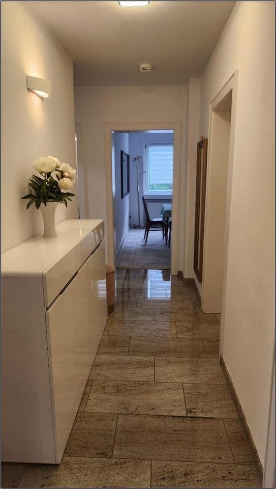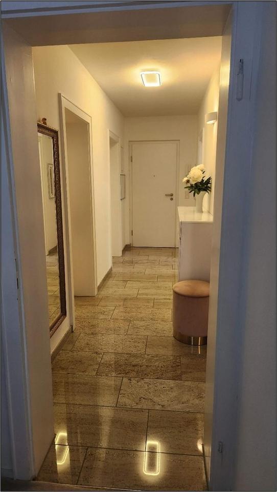 Die Zimmer sind mit elektrischen Rollläden und mit Teppichboden ausgestattet. In 2021 wurde eine neue Küche eingebaut. Waschtrockner, Geschirrspüler, Kochfeld, Ofen und Kühl-Gefrierkombination sind Markengeräte von Siemens, Bosch und Neff. 2024 wurde eine neue Wohnungseingangstür mit höchsten Standards für Sicherheitsvorkehrungen, Schall- und Wärmeisolierung montiert. Eine Türsprechanlage ist vorhanden.