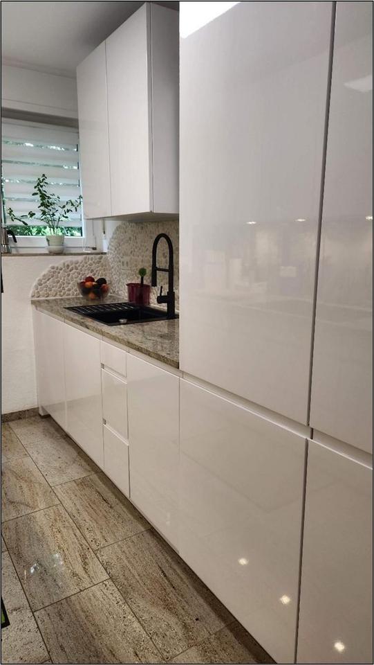 Die begehbare Dusche im modernen Tageslichtbad bietet angenehmen Bewegungsfreiraum. Neben dem hochwertigen Granitboden in Flur und Küche und den Granitfensterbänken ist die Küche eines der Highlights. Spüle und Induktionsfeld sind in die Granitarbeitsplatte eingelassen. Im geräumige Keller findet man viel Stauraum. Das Haus verfügt über einen gemeinschaftlichen Fahrradraum sowie einen Trockenboden.