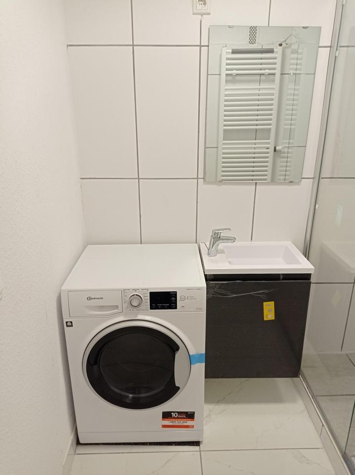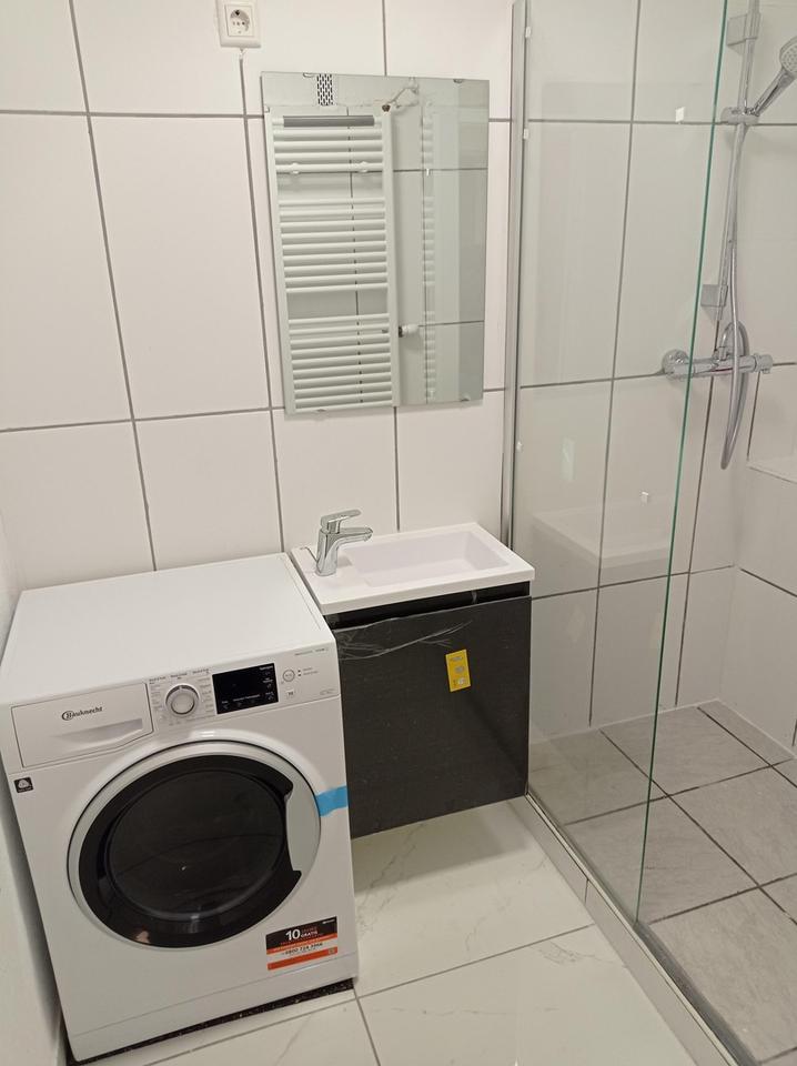Die Wohnung verfügt über eine neue moderne Einbauküche und sie ist mit allem was man braucht ausgestattet: Geschirr, Mikrowelle, elektrische Kochplatte sowie Backofen und Rauchabzug. Eine neue Wäsch-Trocknermaschine steht zur Verfügung.