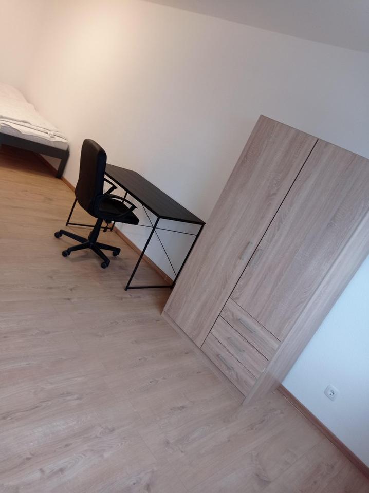Das angebotene Zimmer ist mit Bett 90×200 und einer sehr guten Matratzen und Rost sowie mit der Bettbezüge ausgestattet. Ebenfalls gibt es ein Schreibtisch mit einem gemütlichen Schreibtischstuhl sowie ein Kleiderschrank. Das Zimmer ist mit Laminat ausgestattet.