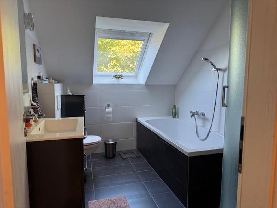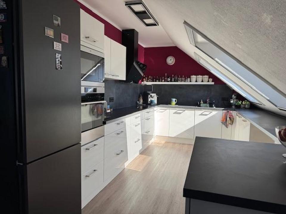 – Dachgeschosswohnung: Drei Zimmer, Tageslichtbad mit Wanne und Dusche, mit einer neuen Einbauküche ausgestattet sowie Dachboden. Die Außenjalousien sind komplett erneuert.