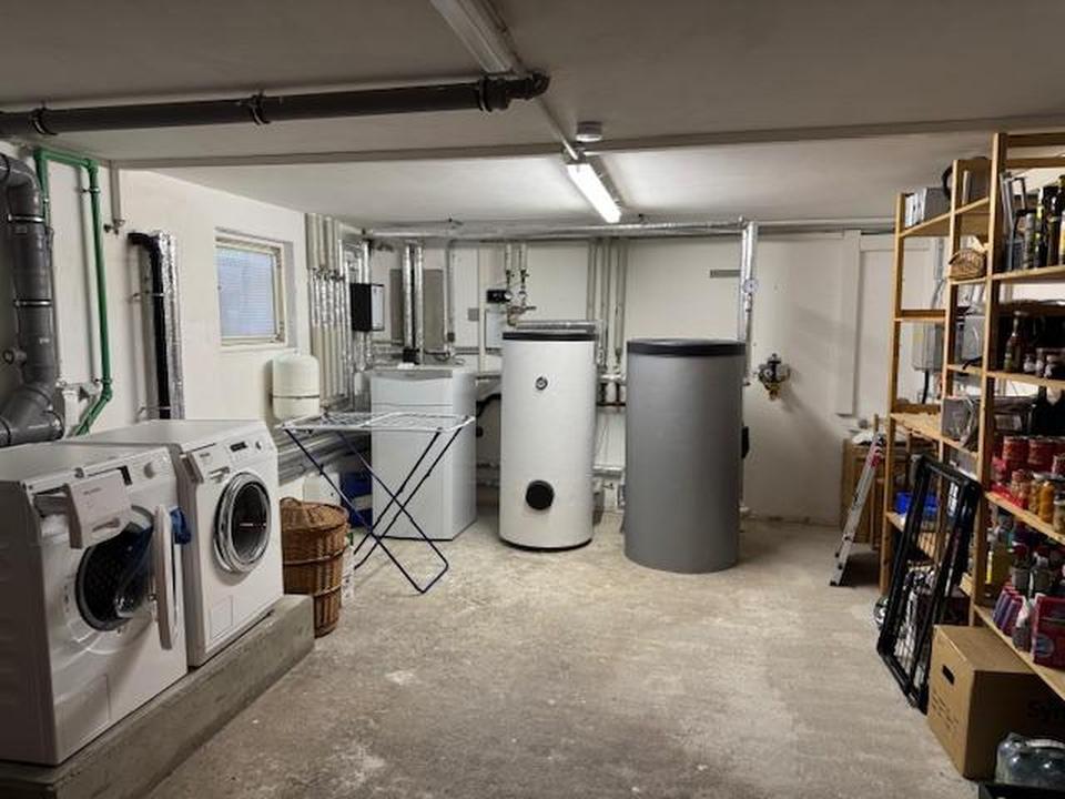 Dazu gibt es einen großzügigen Keller mit vier Räumen – in einem davon sind die Hausanschlüsse und viel Platz für Waschmaschine/Trocker