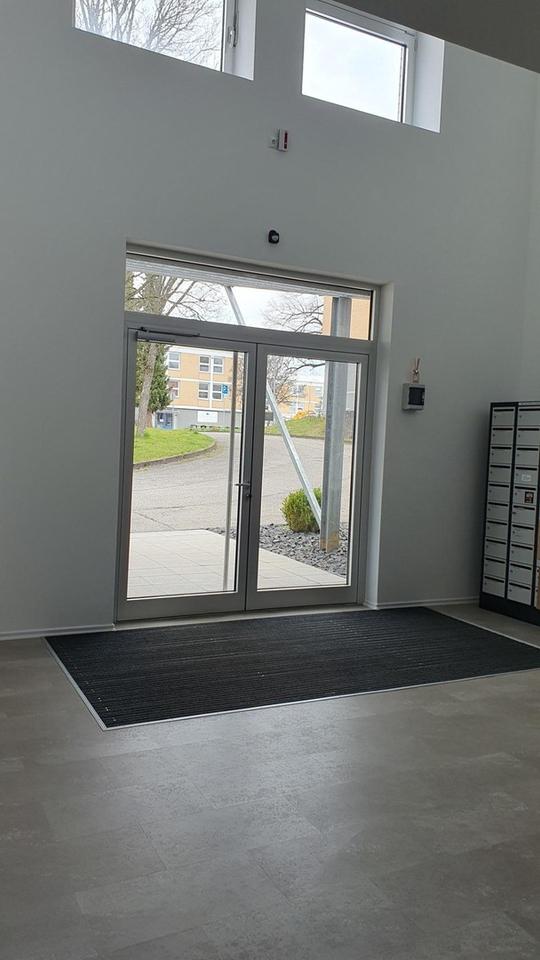 Über einen repräsentativen Eingang sowie einen Notausgang erreicht man die Büroräume.