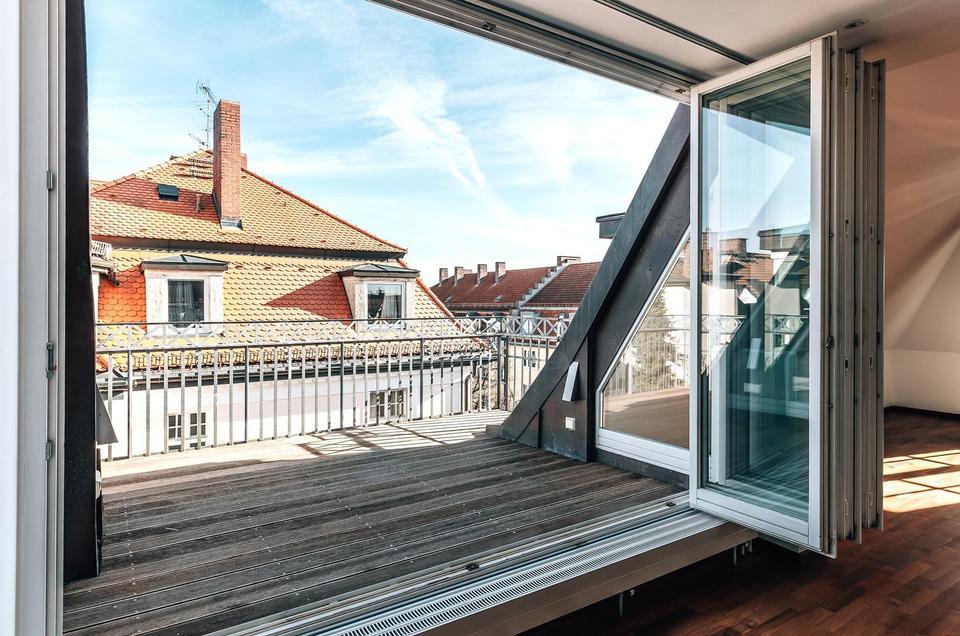 Highlight dieser geschmackvoll ausgebauten Dachgeschosswohnung ist die großzügige Terrasse, die sich direkt im Anschluss an den offenen und grossflächigen Wohn- und Essbereich anschliesst. Mit einem herrlichen Blick über die Dächer Schwabings lassen sich hier wunderbare Sonnenstunden verbringen.
