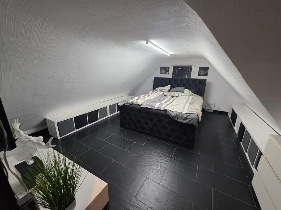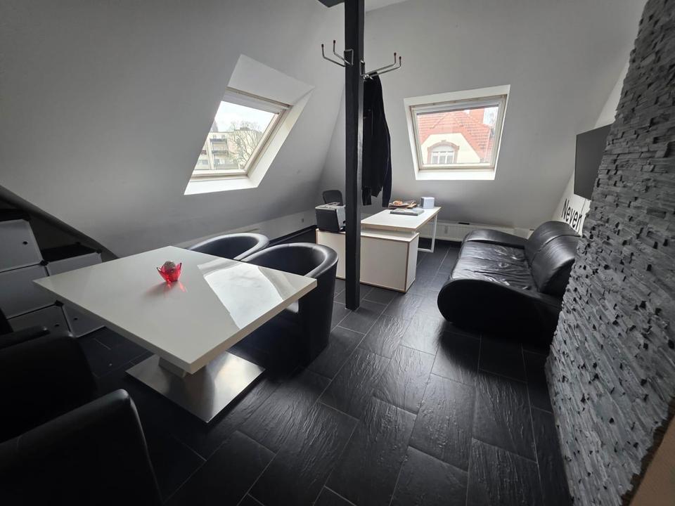 Im Dachgeschoss befindet sich eine großzügige Wohnung. Diese charmante Wohneinheit umfasst insgesamt drei Zimmer, eine Küche inklusive neuer Einbauküche und ein Badezimmer mit Duschbadewanne und Fenster.
