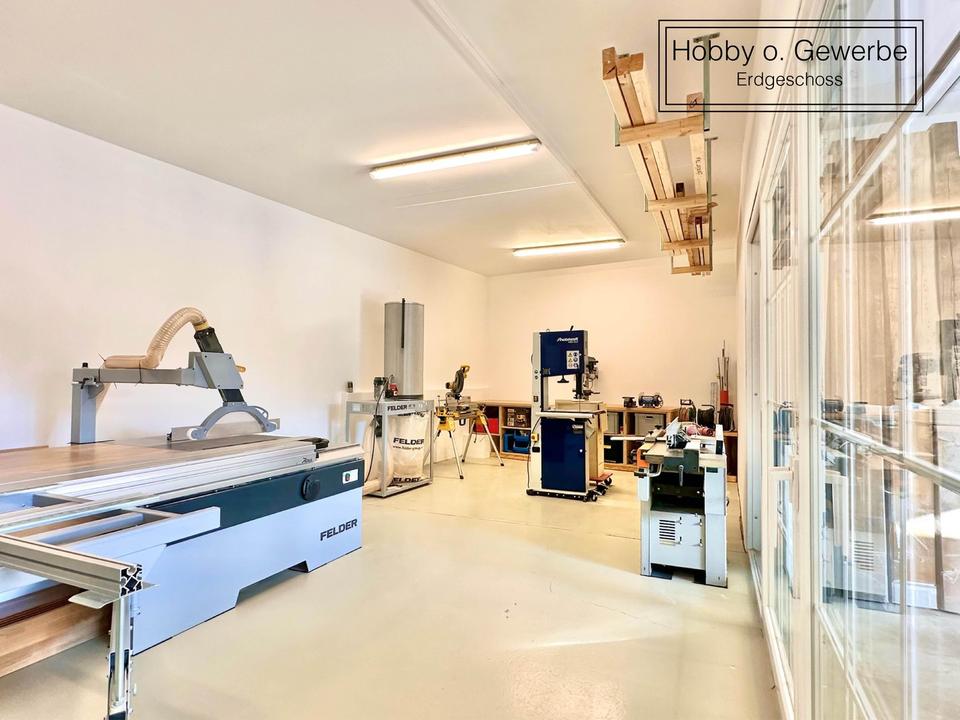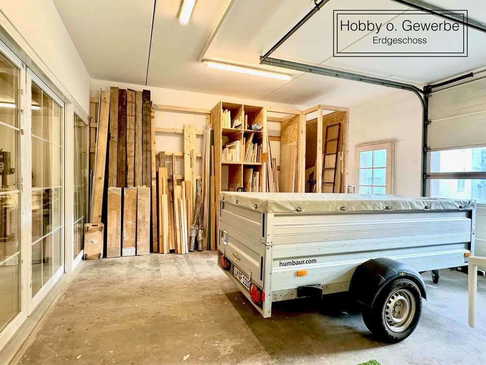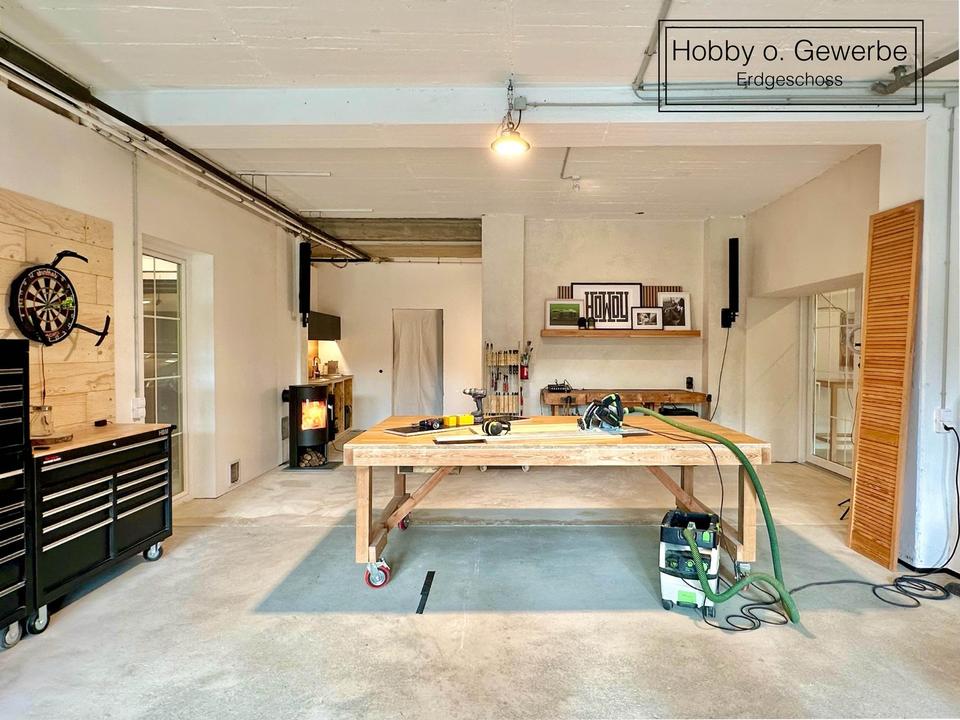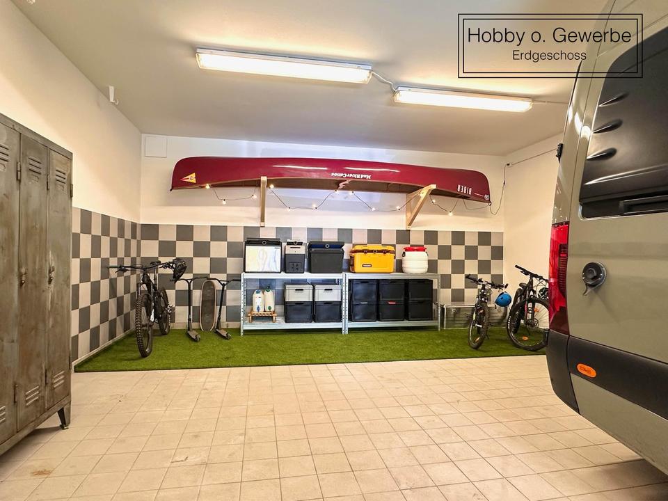 Die Hallen im Erdgeschoss wurden vor dem Umbau als Gewerbeeinheit genutzt und dienen aktuell als Hobbywerkstatt.