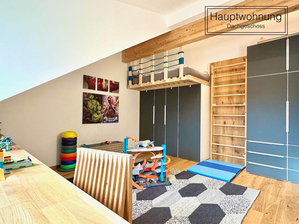 Der Grundriss wurde verändert, um eine offene, helle und gleichzeitig gemütliche Wohnatmosphäre zu schaffen. So entstand ein neues Bad in der Hauptwohnung, ein Schlafzimmer mit Ankleide und vorgelagertem Flur für zusätzlichen Stauraum sowie ein großes Homeoffice für die ganze Familie. Die Küche wurde vom Schreiner gefertigt und ist mit hochwertigen Komponenten ausgestattet.