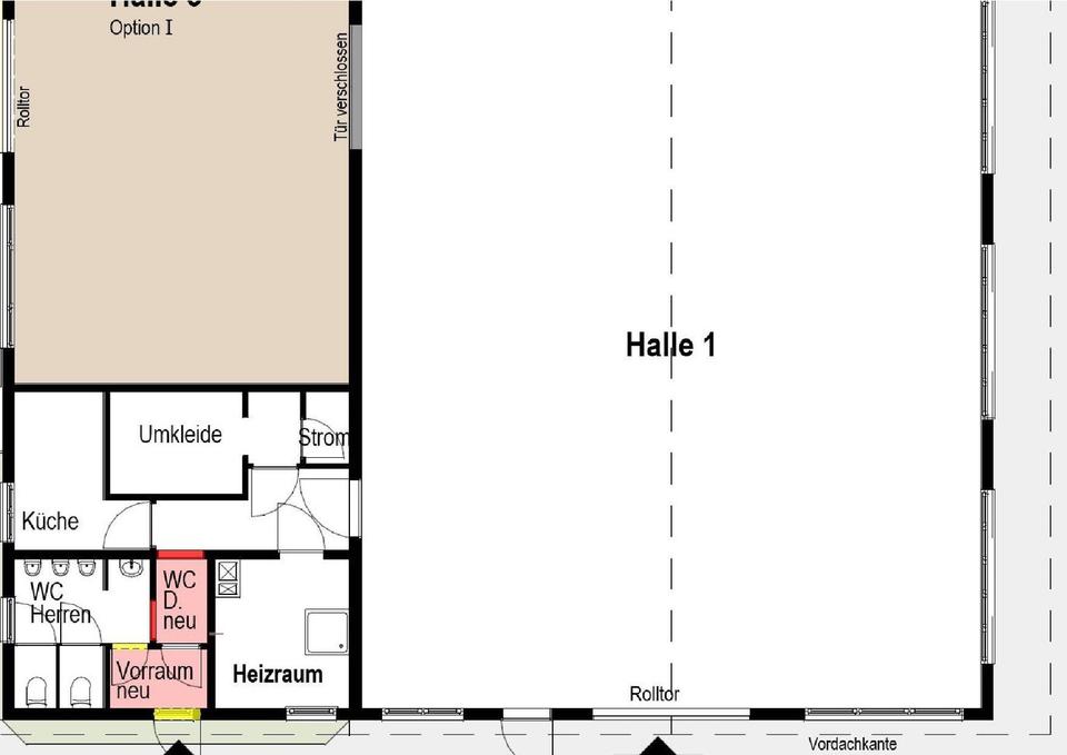 Die Halle verfügt über ein Rolltor und eine separate Toilettennutzung. Umbauten oder Anpassungen der Fläche sind nach Absprache möglich, sodass die Halle individuell an die Bedürfnisse des Mieters angepasst werden kann.