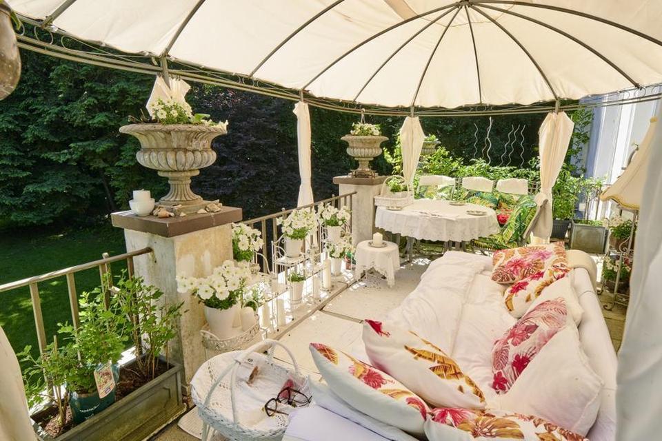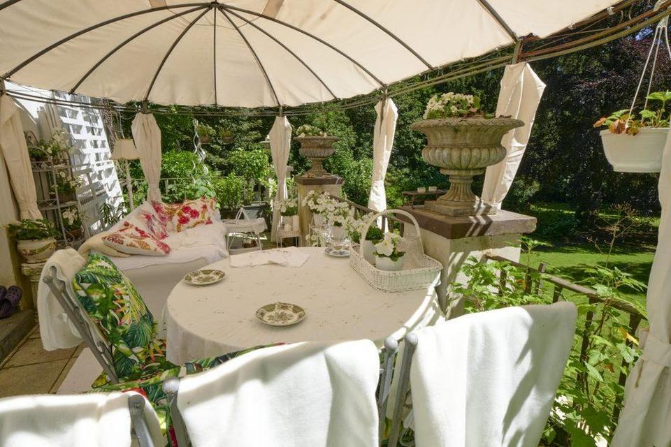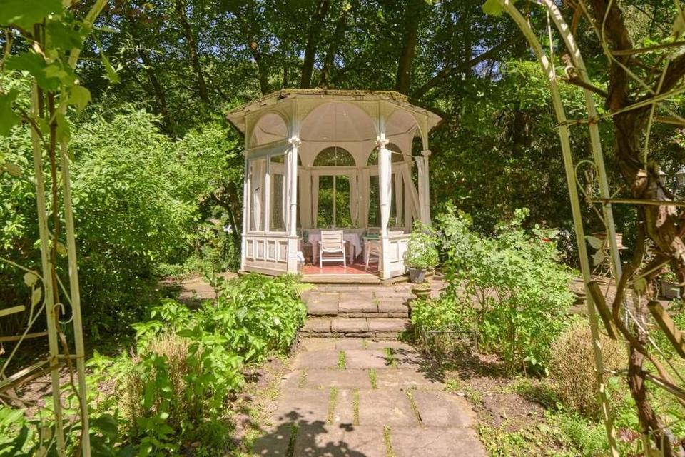Im Garten steht ein seltener Gartenpavillon (Teehaus) mit acht verzierten Metallsäulen und Natursteinboden sowie ein weiteres Gartenhaus, das derzeit als Atelier genutzt wird. 2 Grillplätze und ein herrlich eingewachsener Baumbestand mit riesigen Rotbuchen bilden das Herz der herrlichen, gepflegten Anlage.