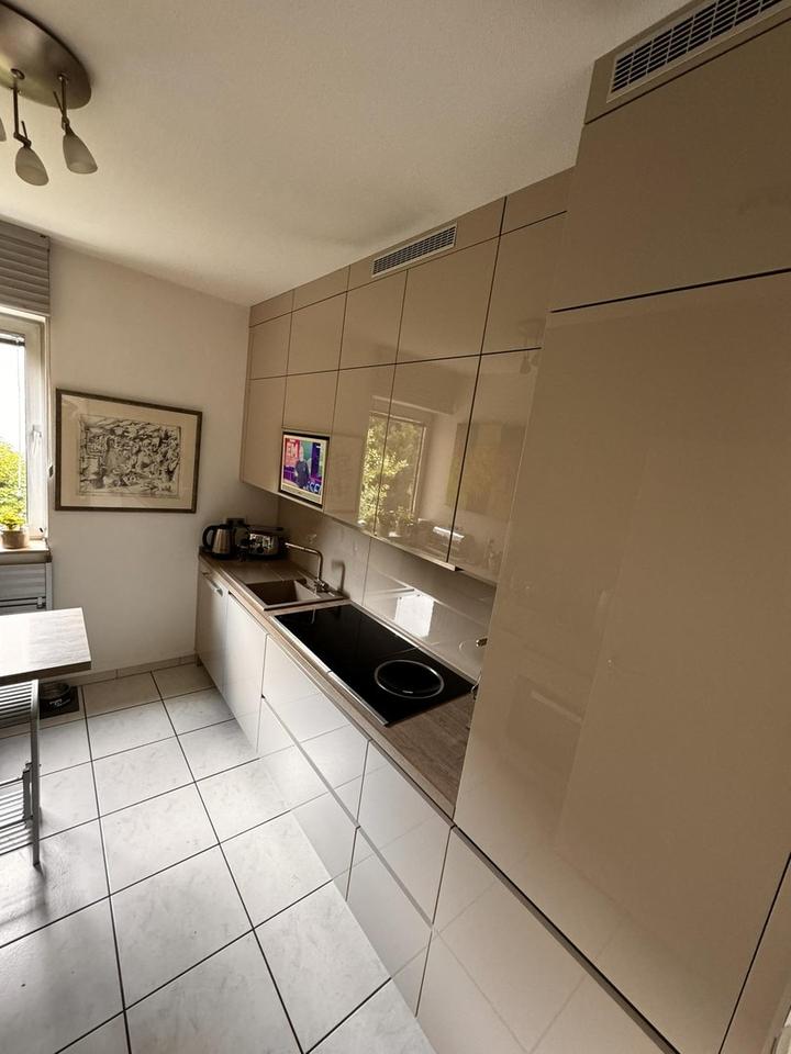 Hochwertige Einbauküche mit u.a. Miele-Elektrogeräten und eingebautem Fernseher