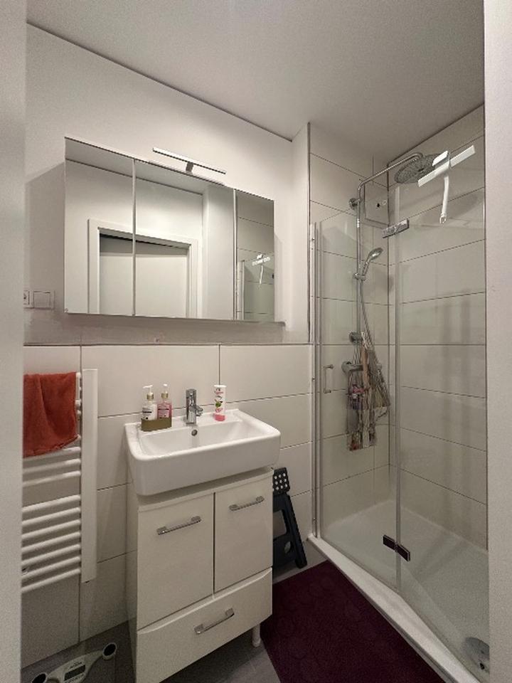 Die Wohnung ist möbliert (Möbel, Smart-TV, Waschmaschine, Wäschetrockner, Geschirr, Kaffeemaschine, Wasserkocher, Toaster, Bettwäsche, Wäscheständer, Bügelbrett und Bügeleisen, Handtücher, Grill, Internetzugang 1000 Mbit up und 1000 Mbit down),