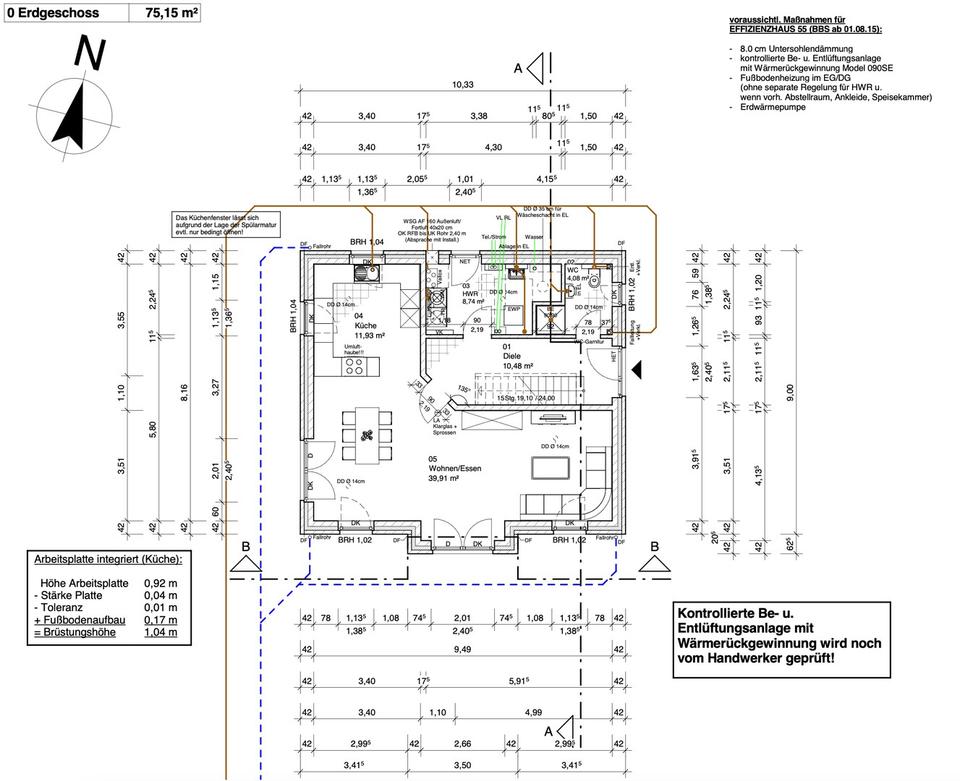 Das Haus überzeugt mit einer durchdachten Raumaufteilung und energieeffizienter Ausstattung: Eine Erdwärmepumpe sorgt für eine kostensparende und nachhaltige Wärmeversorgung, während die zentrale Be- und Entlüftung mit Wärmerückgewinnung für ein angenehmes Raumklima und niedrige Energiekosten sorgt.