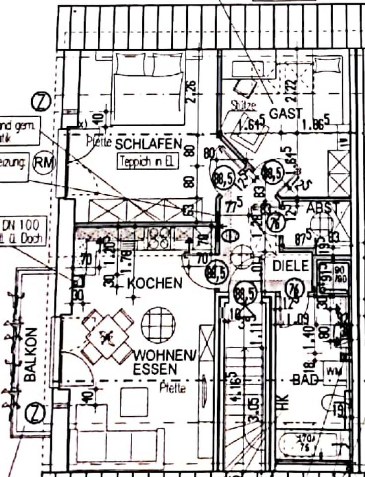 2,5 Zimmer – Einbauküche – Fußbodenheizung – 1 großes Tageslichtbad mit Dusche, Badewanne und Waschmaschinenanschluss – Balkon – Abstellraum