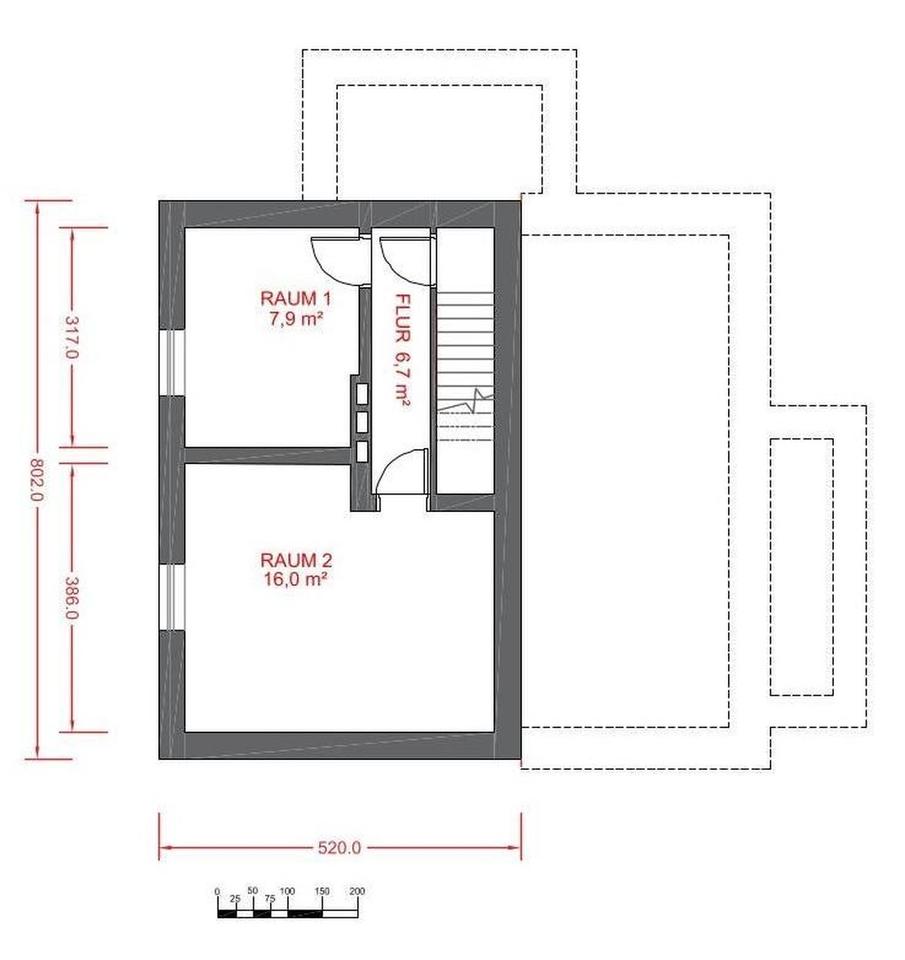 •Nutzfläche: 56,5 m² inkl. zwei Abstellkammern (eine mit niedriger Decke), Keller, Anbau, Spitzboden.