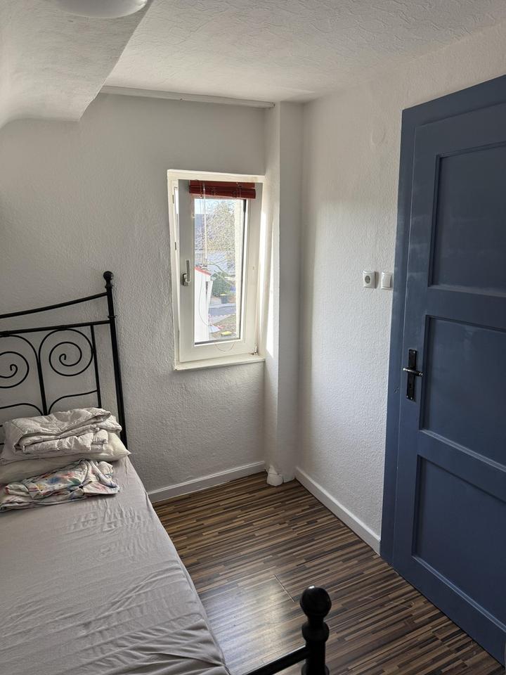 Zu vermieten ist derzeit ein Zimmer im DG in einer WG. Das gesamte Haus hat insgesamt 100qm und einen schönen Garten der für die allgemeine Nutzung ist. Im 1. OG ist ein Badewannenbad und im EG ist ein WC und eine separate Dusche. Im EG befindet sich eine Gemeinschaftsküche, im Keller eine Waschmaschine. Einzug ist nach Vereinbarung. Stellplatz am Haus vorhanden.