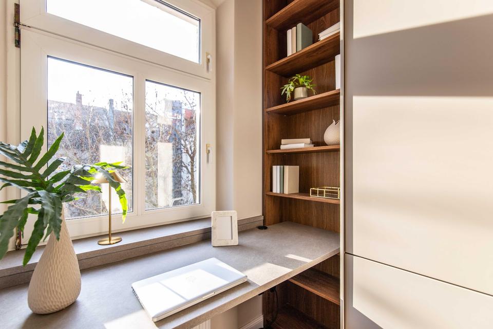 • Maßgefertigte Einbauten: Garderobe, Homeoffice/Schreibtischlösung, Einbauschränke, TV-/Sideboardanlage