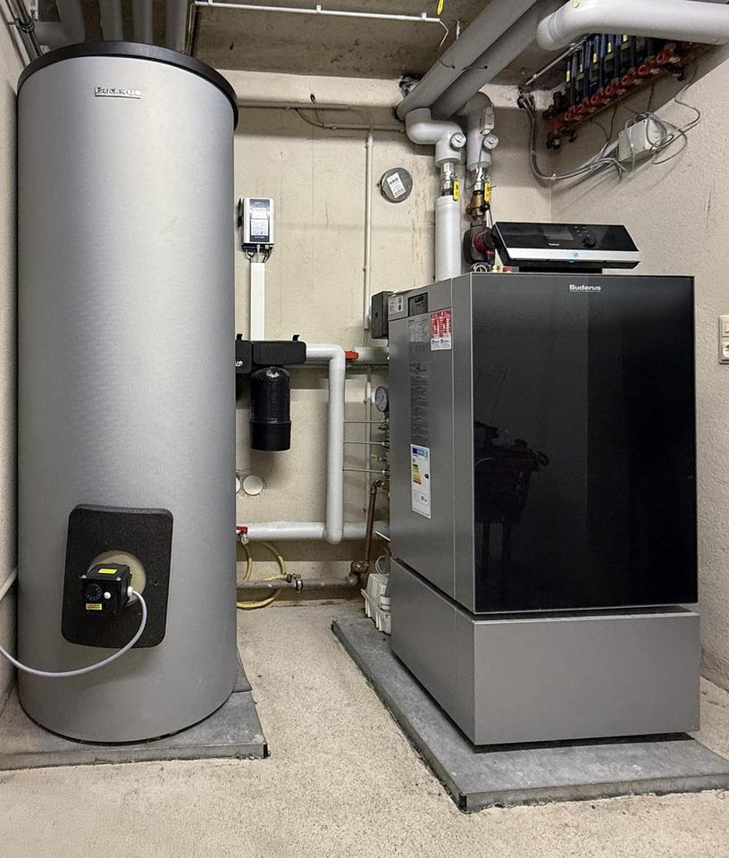 • Moderner Buderus Gasbrennwertkessel mit großem PV-Trinkwasserspeicher, neu 11/2022.