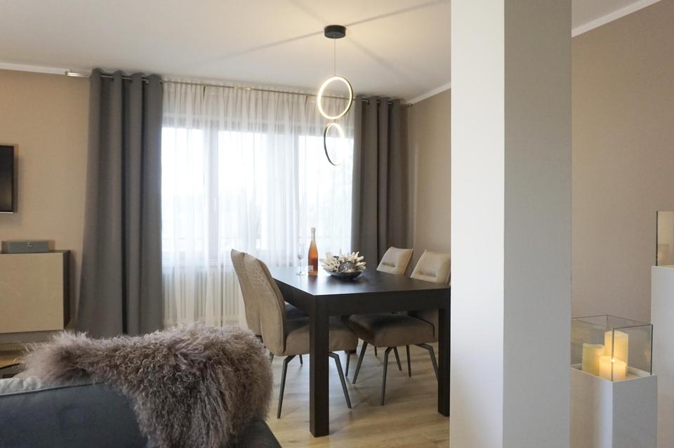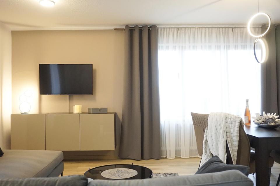 Im Gegensatz zu sterilen Business-Apartments punktet diese Wohnung mit echtem Wohlfühl-Charakter. Der großzügige Wohn- und Essbereich mit offener Küche ist geschmackvoll eingerichtet. Ein besonderes Highlight ist das zusätzliche Schrankbett (140×200 cm) im Wohnzimmer – ideal, wenn z.B. am Wochenende Kinder oder Gäste zu Besuch kommen.