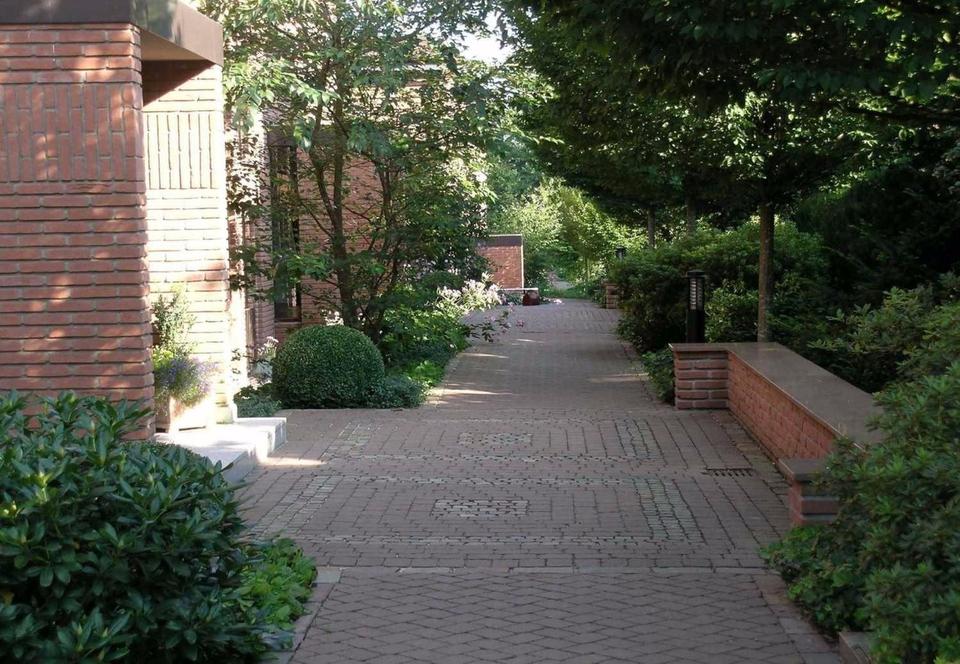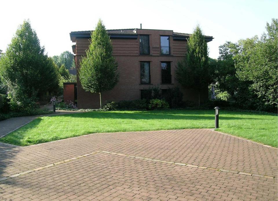 Umgeben von einer besonderen, durch eine Garten- und Landschaftsarchitektin geplanten Gartenanlage, verfügt die Wohnanlage über 24 Eigentumswohnungen in zwei Doppelhäusern und 37 Stellplätze in einer Tiefgarage. Beide Häuser sind verbunden durch die gemeinsame, sehr gut anzufahrende, sichere und helle Tiefgarage mit einem ferngesteuerten elektrischen Schnell-Lauftor, das sich bei Ausfahrt automatisch öffnet.