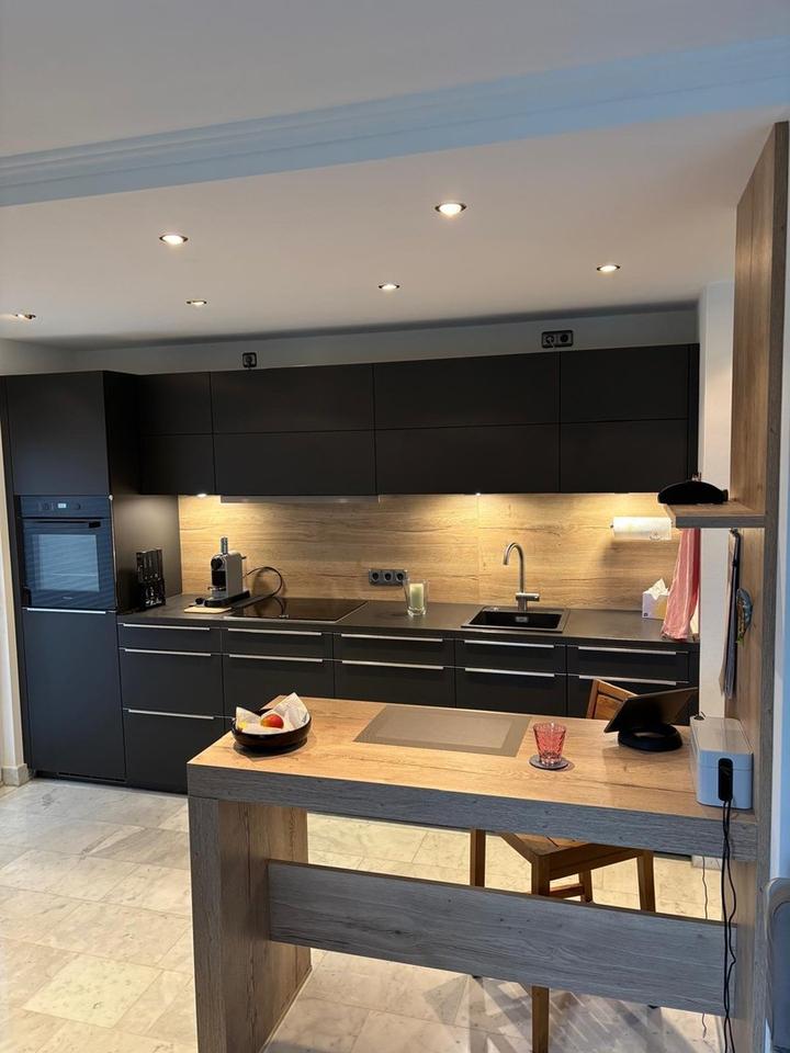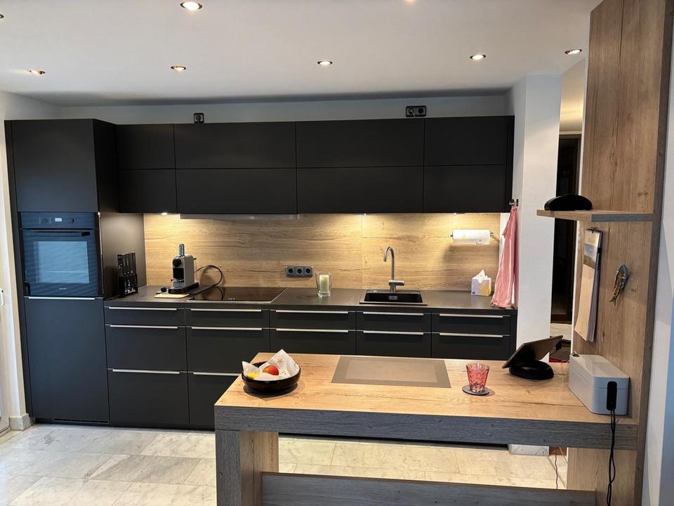 Der Wohnbereich ist mit ca. 40m2 großzügig bemessen und besteht aus Wohn- und Essbereich sowie einer offenen Küche. Die Einbauküche mit Essplatz (von 2020, Einbauherd von der Marke Miele; Spülmaschine, Kühlschrank, Kochfeld mit Induktion sowie Abzugshaube von Neff) kann vom Vormieter abgelöst werden.