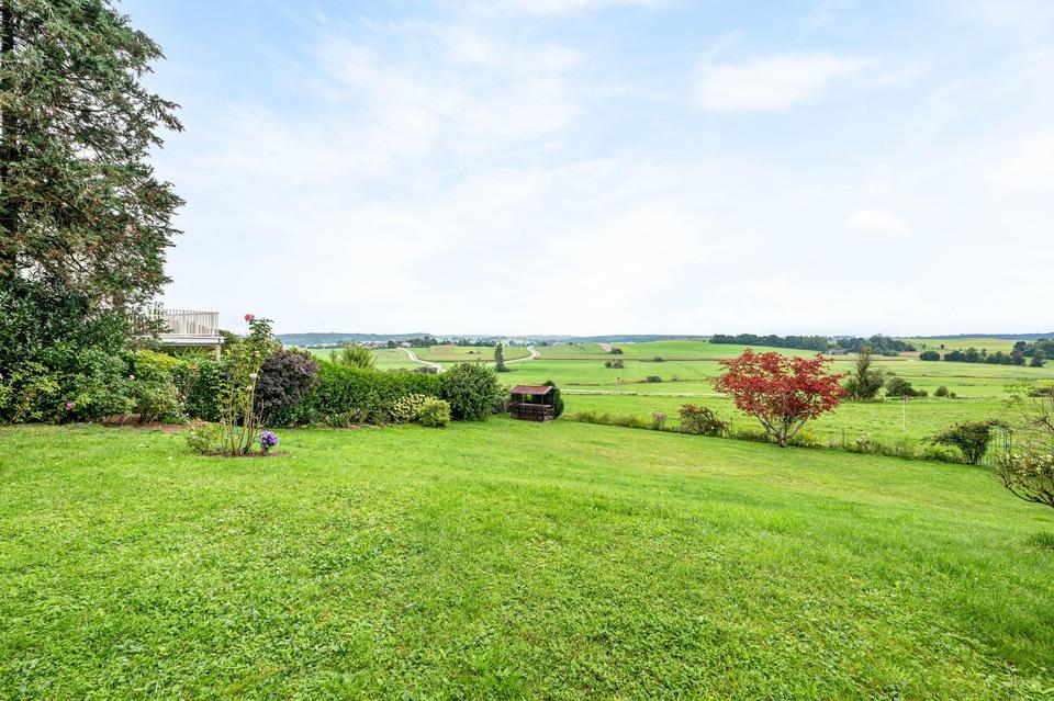 Das großzügige Grundstück ist ein wahres Paradies für Naturliebhaber, Familien und Menschen, die Großzügigkeit, Privatsphäre und Lebensqualität schätzen. Direkt am Landschaftsschutzgebiet gelegen, eröffnet sich ein unverbaubarer Panoramablick über Wiesen und Felder bis zum Horizont – hier wird der Traum vom Wohnen im Grünen Wirklichkeit.