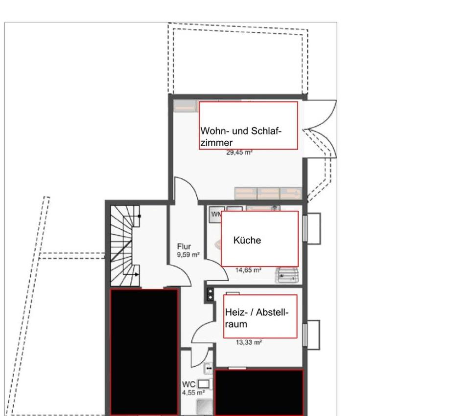 Es handelt sich um eine möblierte 1-Zimmer-Souterrain-Wohnung in einem Wohnhaus mit zwei weiteren Wohnungen, die von dem Vermieter genutzt werden.