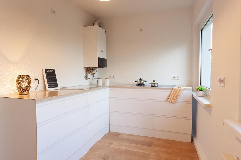 Die großzügige Küche bietet ideale Voraussetzungen für gemeinsames Kochen und verfügt über genügend Platz für einen gemütlichen Frühstücksbereich.